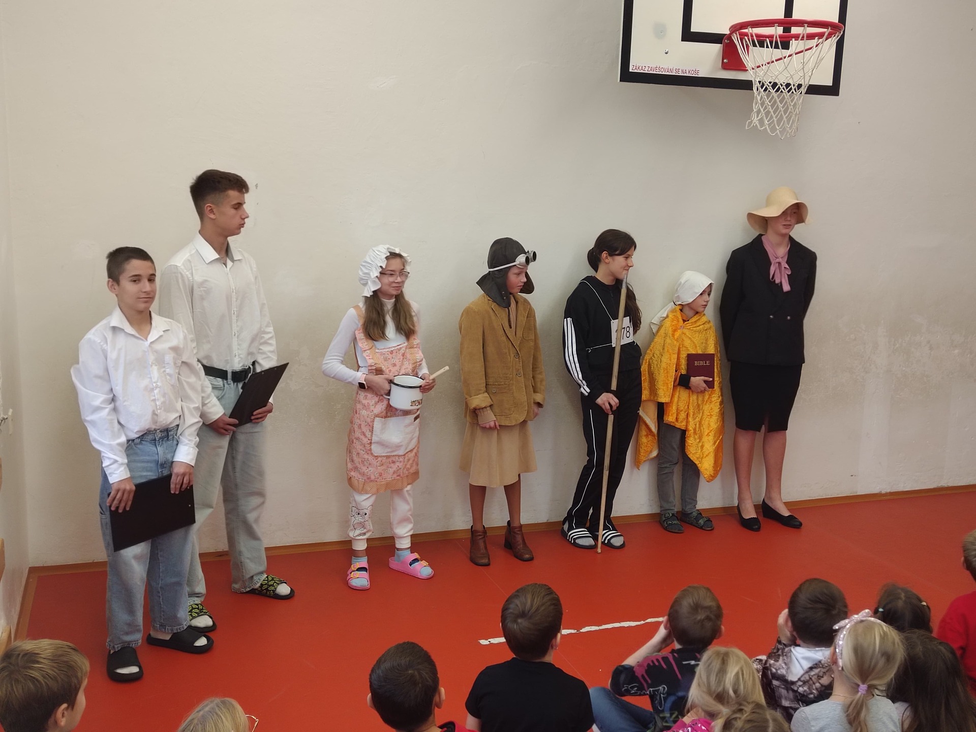 Celou akci moderovala dvojice deváťáků Vojtěch Plátenka a Vojtěch Vokáč. Součástí setkání byl opět vědomostní kvíz, který se týkal významných českých osobností. Letos to byly samé slavné ženy a představili nám je naši sedmáci Tereza Valentová (Magdalena Dobromila Rettigová), Josef Jaroš (Eliška Junková), Adéla Gösslová (Dana Zátopková), Vendelín Cupal (sv. Ludmila), Matyáš Hořejší (Hana Podolská) a Eva Svobodová (Věra Čáslavská). Byla to pro ně premiéra a za pěkný výkon i nápadité kostýmy si zaslouží velkou pochvalu.