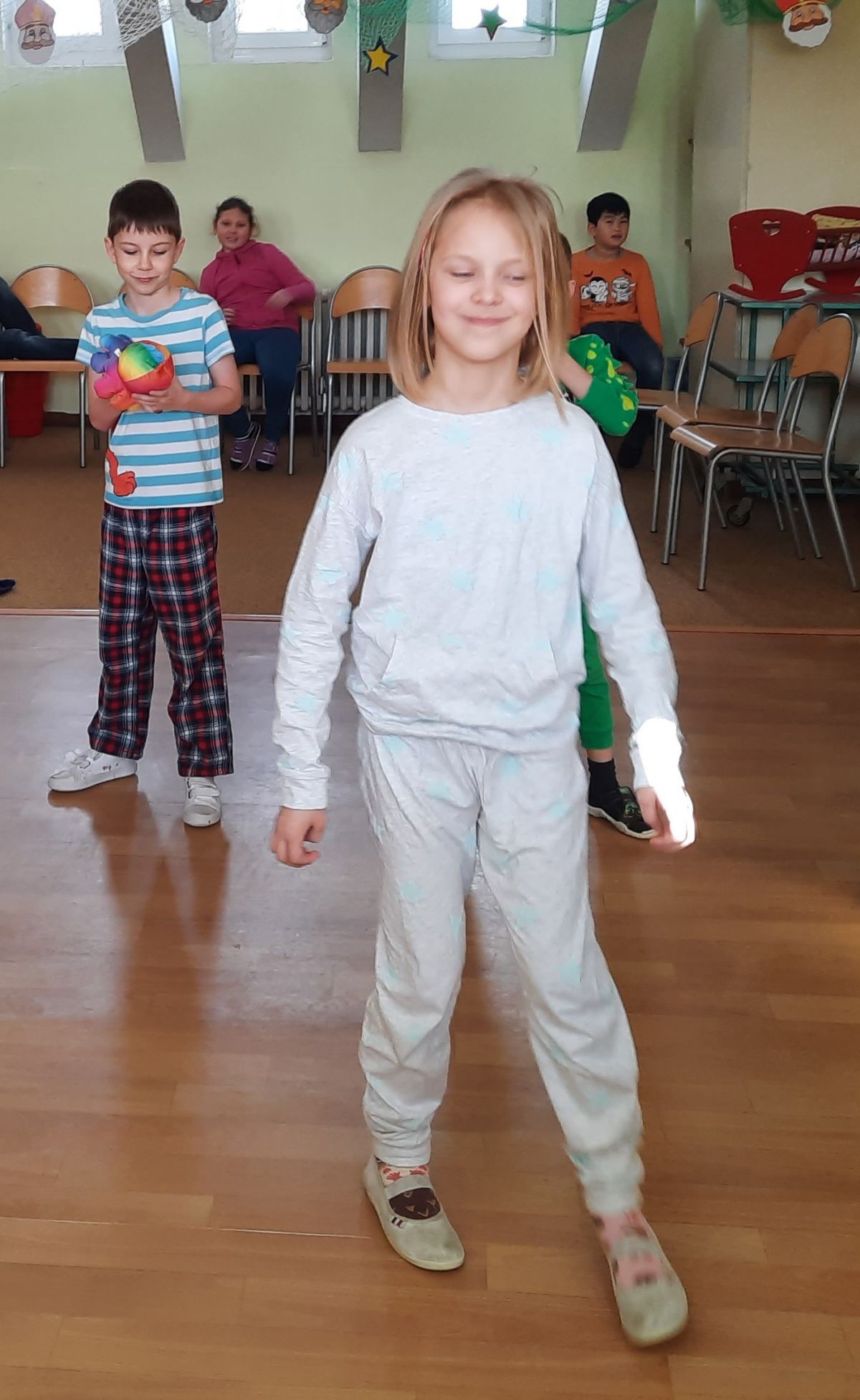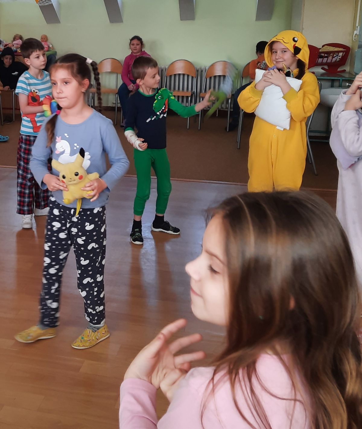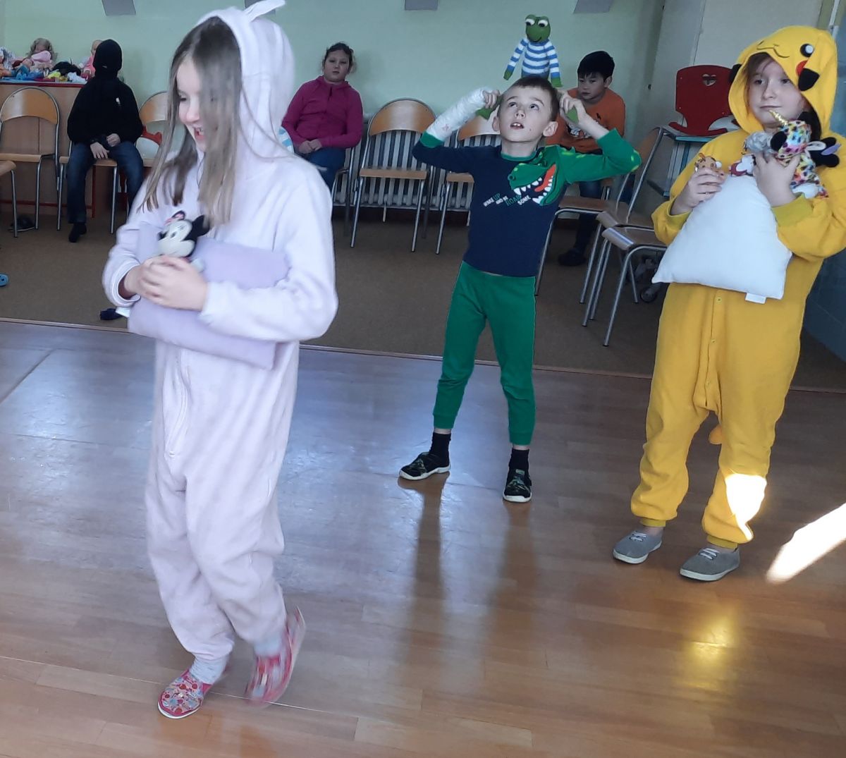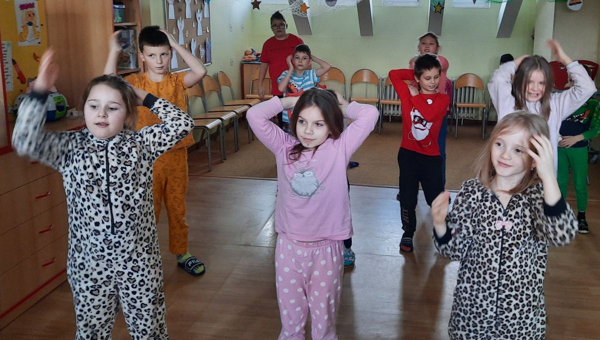 28.ledna jsme si v družině uspořádali párty. Nebyla však obyčejná, ale pyžamová. Všichni jsme si přinesli pyžama, oblíbený polštářek, plyšáčka a zábava mohla začít. Odpoledne jsme začali ukolébavkou. Každý si našel na koberci místečko a chvilku relaxoval. Poté jsme pokračovali módní přehlídkou pyžámek, následovala oblíbená hra židličkovaná. Také nám "projela" v družině mašinka a nechyběla ani diskotéka, kde všichni tancovali a zpívali a to vše na známé dětské písničky. Pyžamovou párty jsme ukončili tak, jak jsme jí zahájili a to ukolébavkou, kde si každý lehl na svůj polštářek, zavřel oči a vzpomínal na krásně strávené odpoledne.