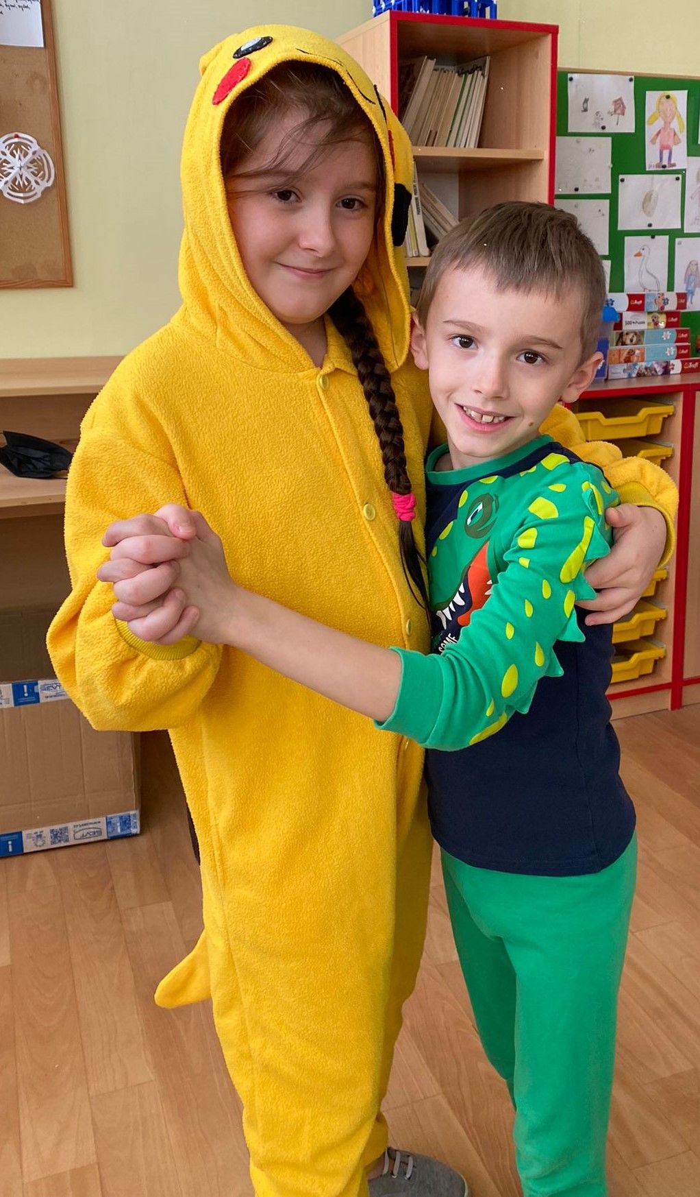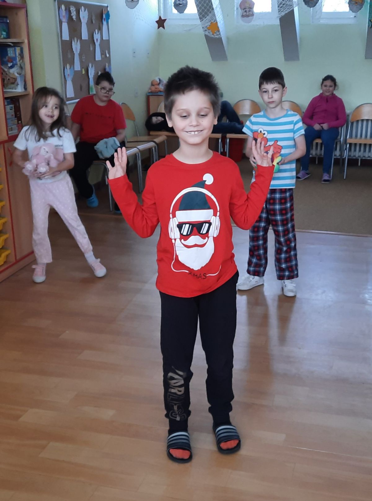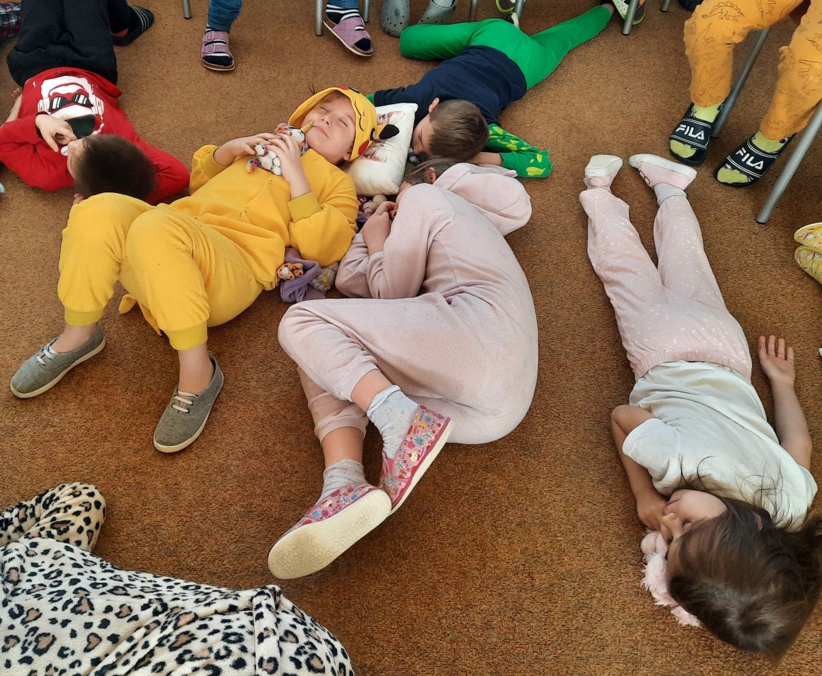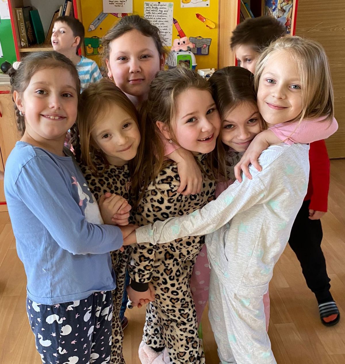 28.ledna jsme si v družině uspořádali párty. Nebyla však obyčejná, ale pyžamová. Všichni jsme si přinesli pyžama, oblíbený polštářek, plyšáčka a zábava mohla začít. Odpoledne jsme začali ukolébavkou. Každý si našel na koberci místečko a chvilku relaxoval. Poté jsme pokračovali módní přehlídkou pyžámek, následovala oblíbená hra židličkovaná. Také nám "projela" v družině mašinka a nechyběla ani diskotéka, kde všichni tancovali a zpívali a to vše na známé dětské písničky. Pyžamovou párty jsme ukončili tak, jak jsme jí zahájili a to ukolébavkou, kde si každý lehl na svůj polštářek, zavřel oči a vzpomínal na krásně strávené odpoledne.