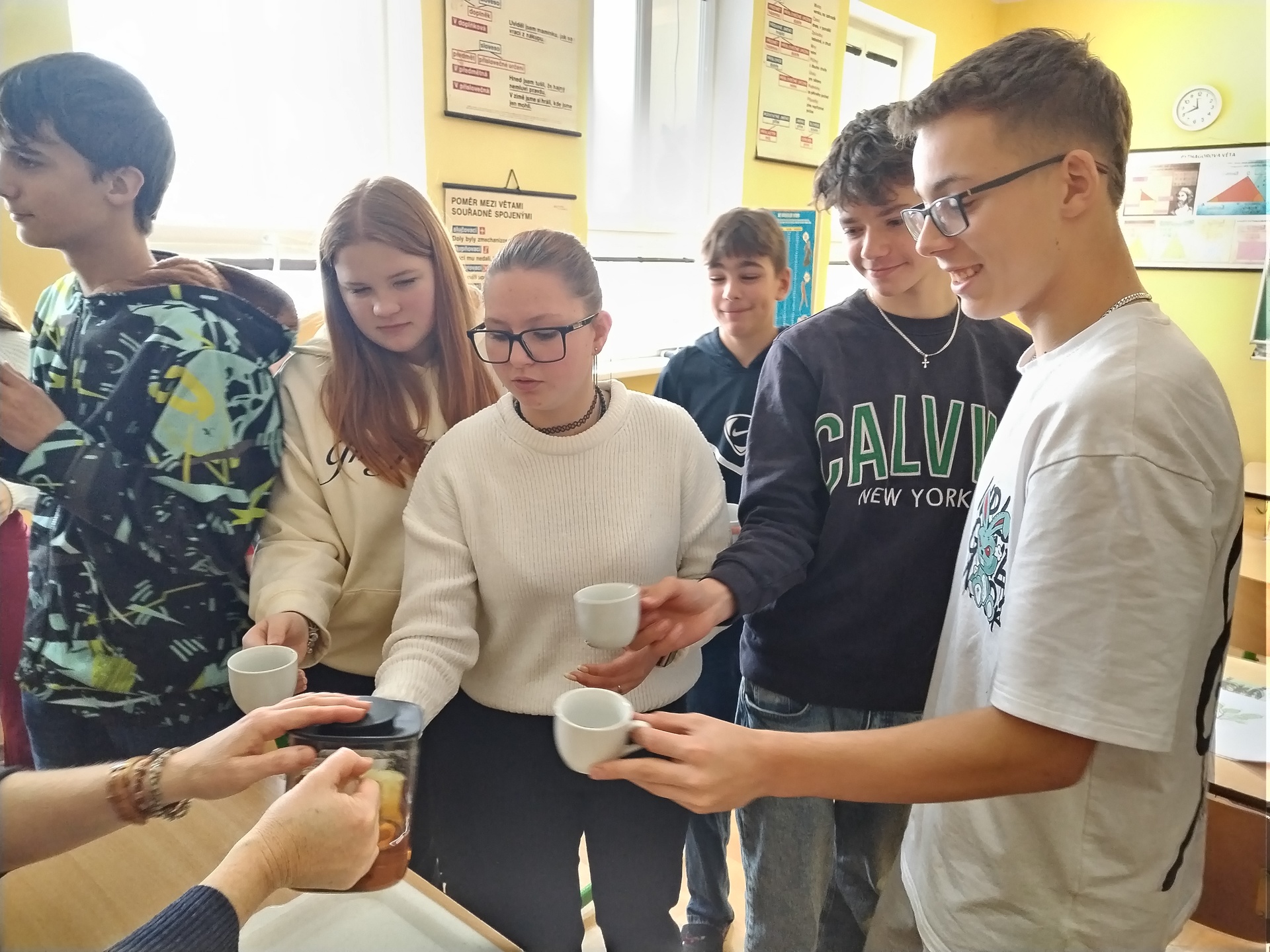 Zjištěné poznatky pak jednotliví žáci odprezentovali všem ostatním a na závěr hodiny byla připravena malá ochutnávky bylinkových čajů. A dobré prý byly všechny. Heřmánkový, mátový i šípkový :).