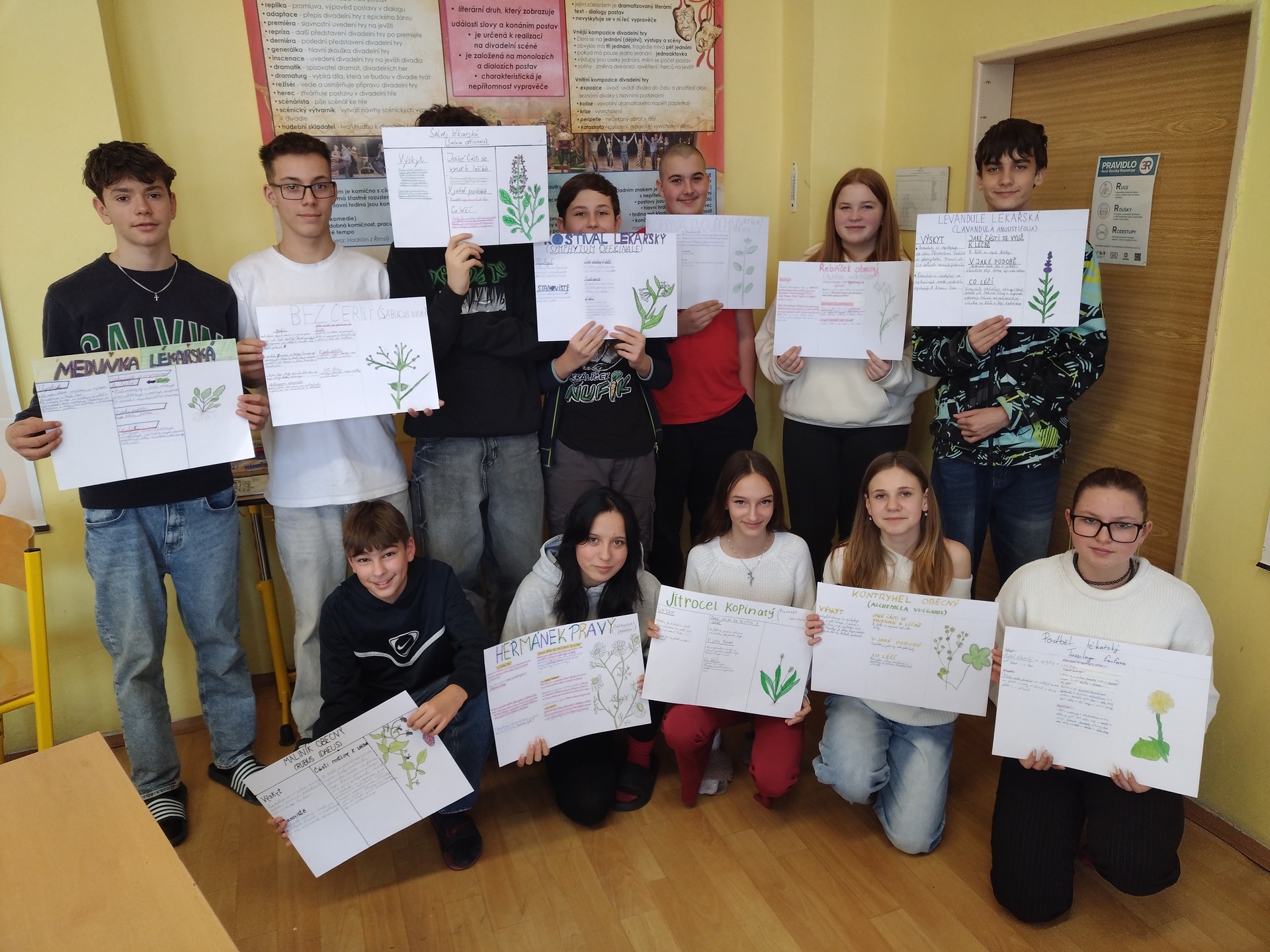 Každý žák osmé třídy vytvořil portrét jedné léčivé rostliny, ve kterém zachytil místo výskytu, zaměřil se na to, jaké části se k léčbě používají a v jaké formě bylina pomáhá.