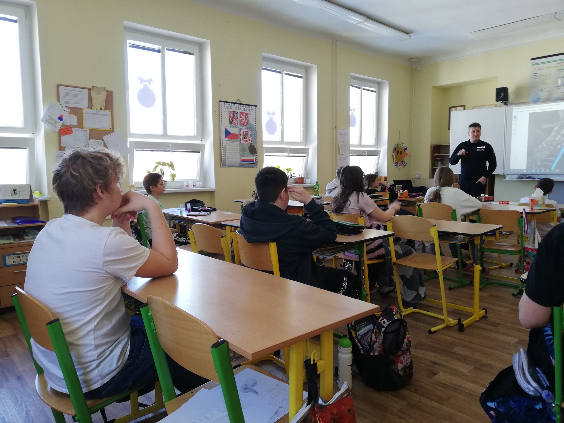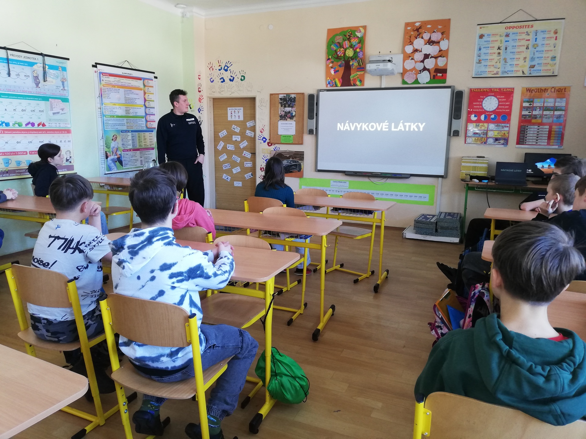 Sedmáci pak měli příležitost osvěžit si prostřednictvím besedy rozdělení návykových látek a poslechnout si, jak často je jejich užívání propojeno s trestnou činností a jak ohrožuje lidské zdraví.