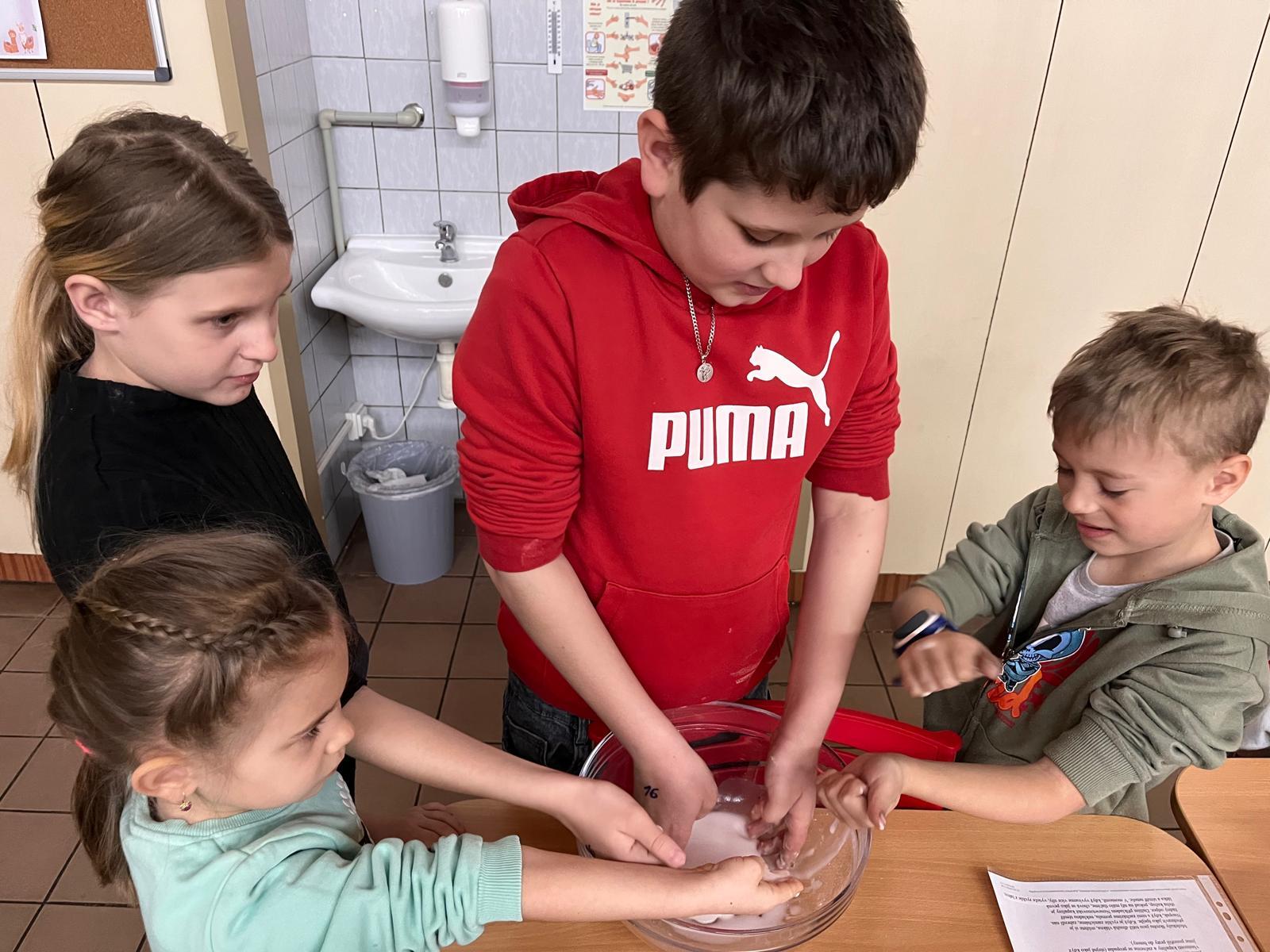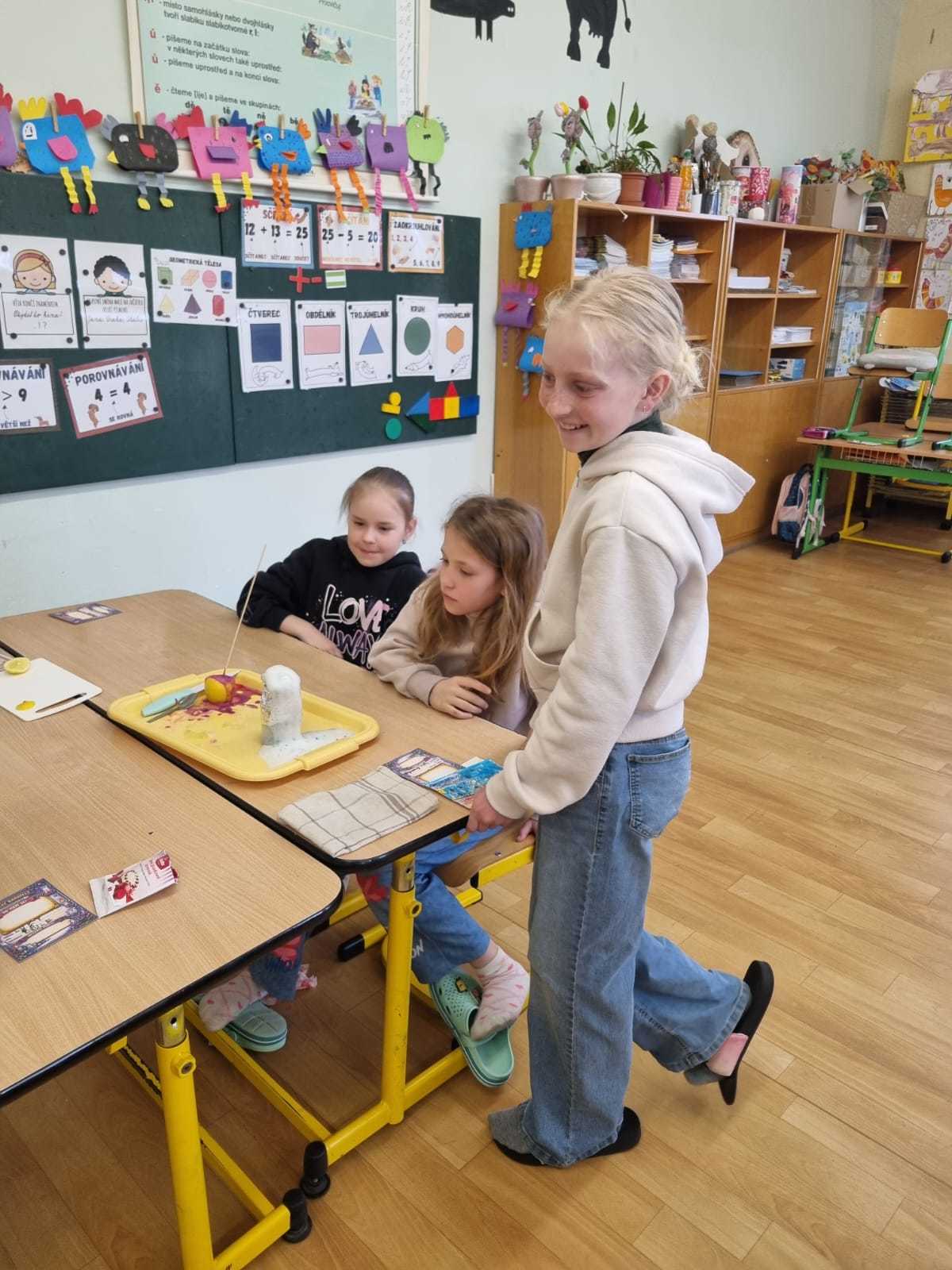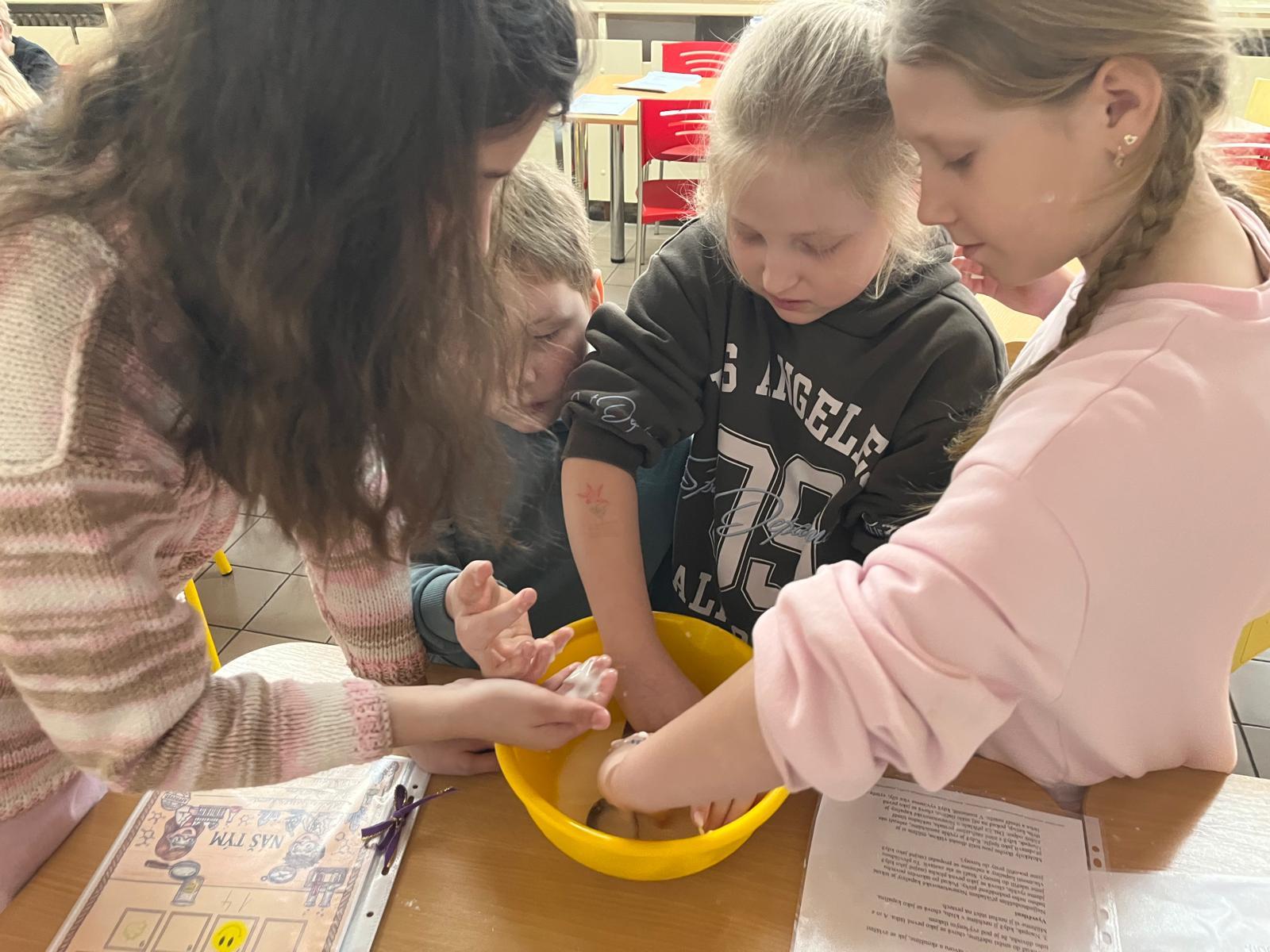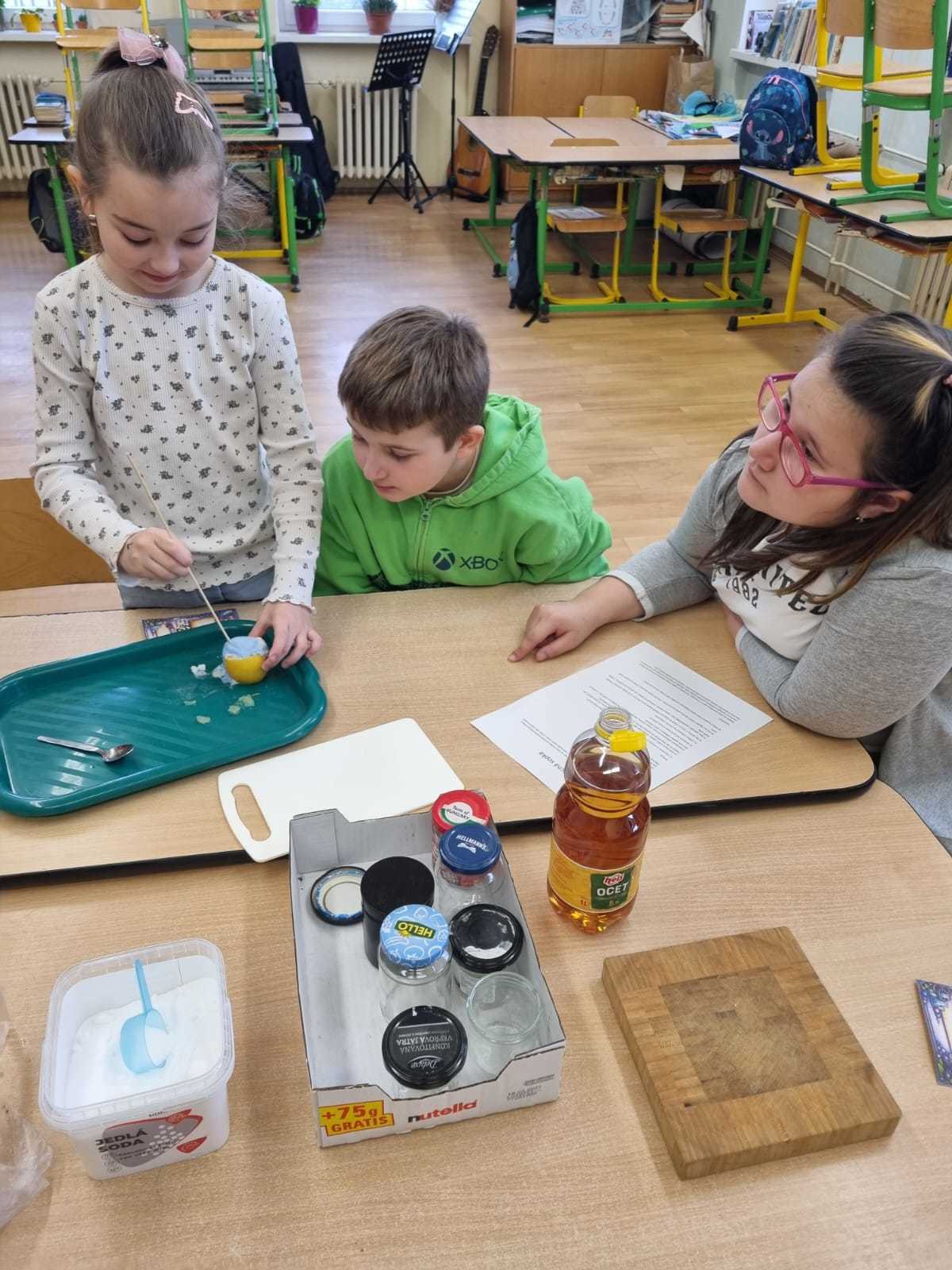 Žáci pracovali ve smíšených skupinách napříč jednotlivými třídami, což jim umožnilo nejen společně bádat, ale také se lépe poznat a spolupracovat s novými kamarády. Každá skupina se postupně věnovala různým experimentům, mezi které patřily například magnetismus, sopka, nafouknutý balonek, tajná zpráva, kostka ledu v oleji, bublinková trampolína, svíčka ve sklenici, tekutý písek nebo magnety v pohybu.