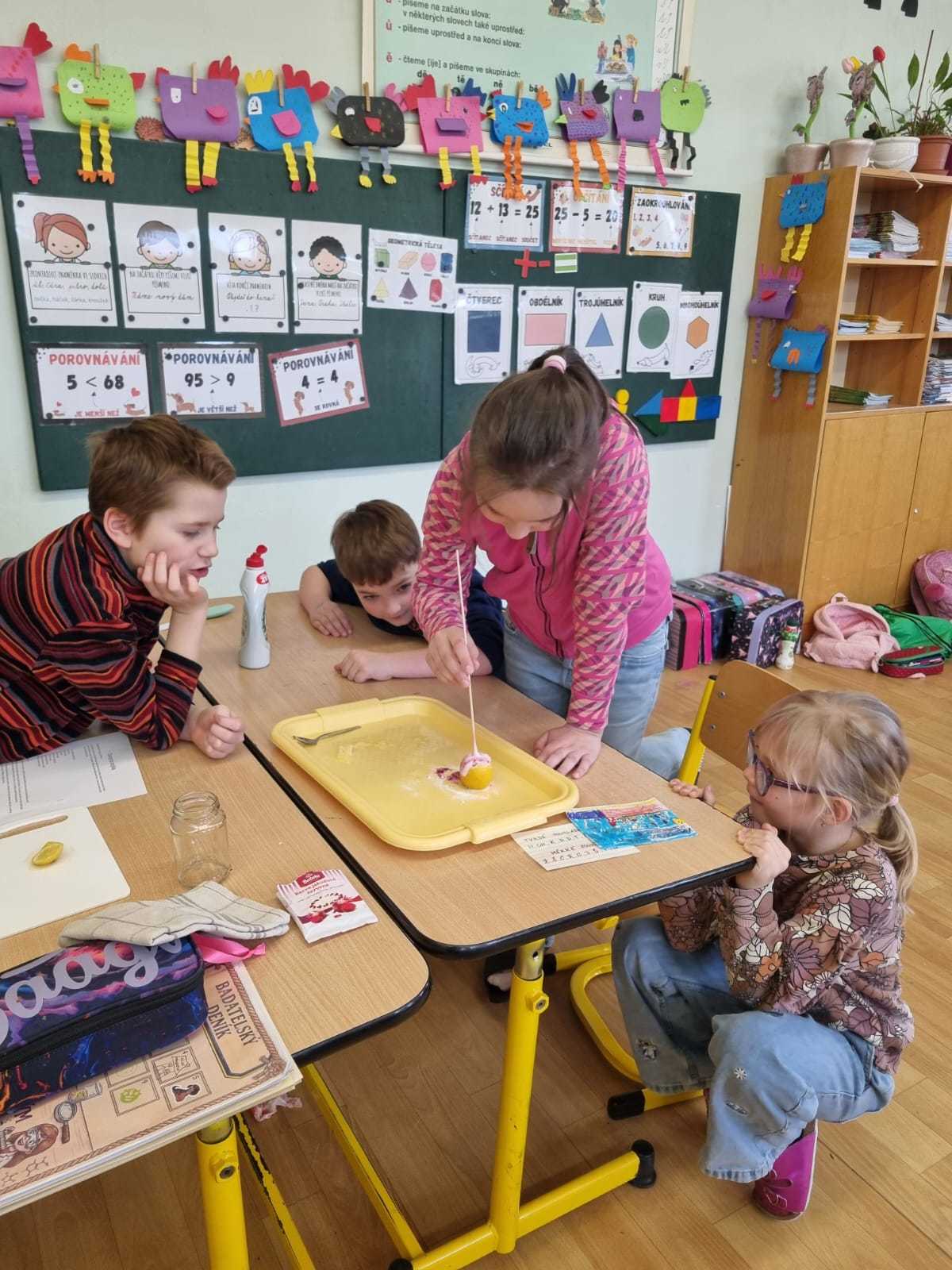 Na prvním stupni naší školy proběhl projekt s názvem „Výbuch bude v pět“, který byl zaměřený na pokusy a experimenty. Děti si během dvou dnů vyzkoušely roli malých vědců a objevovaly svět přírodních jevů zábavnou a praktickou formou.