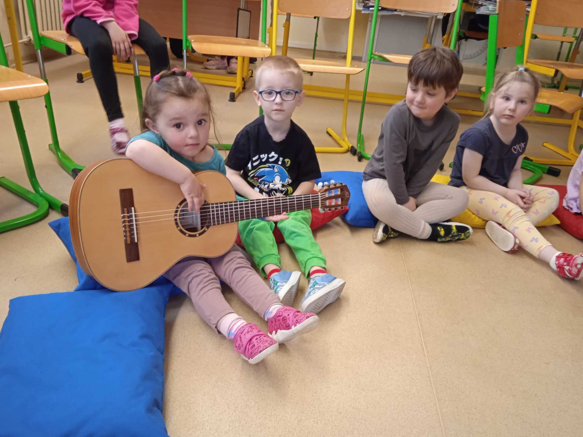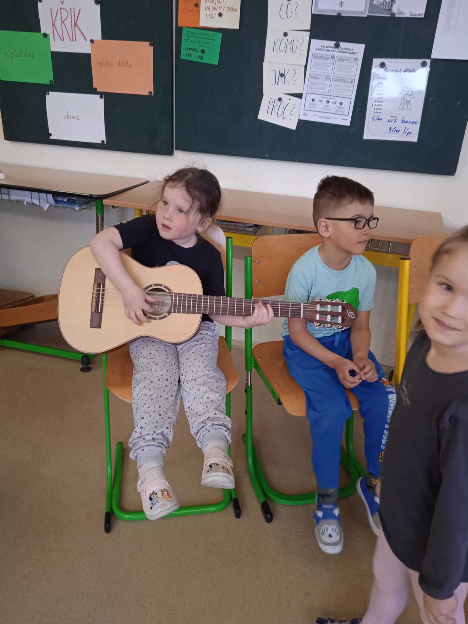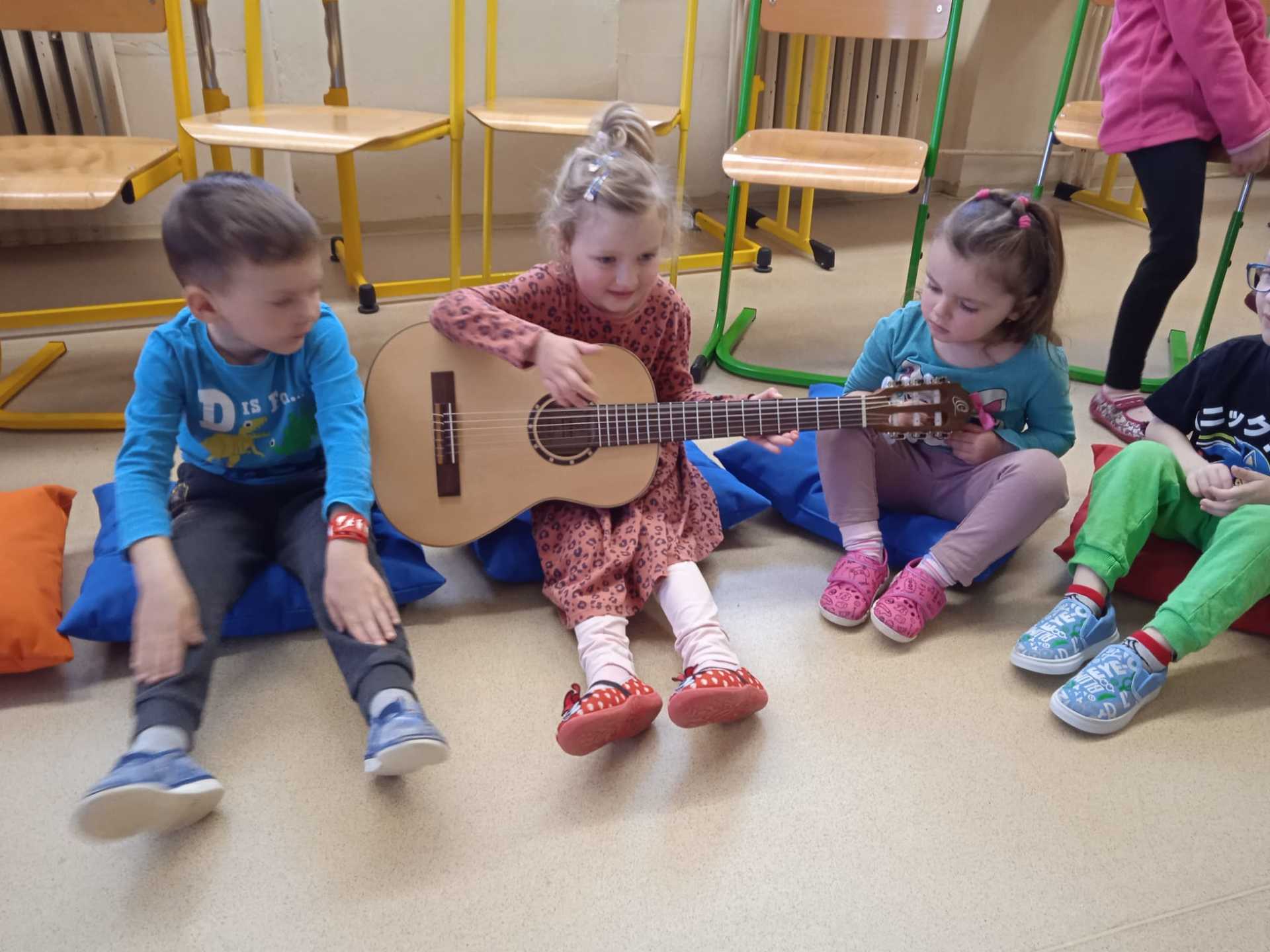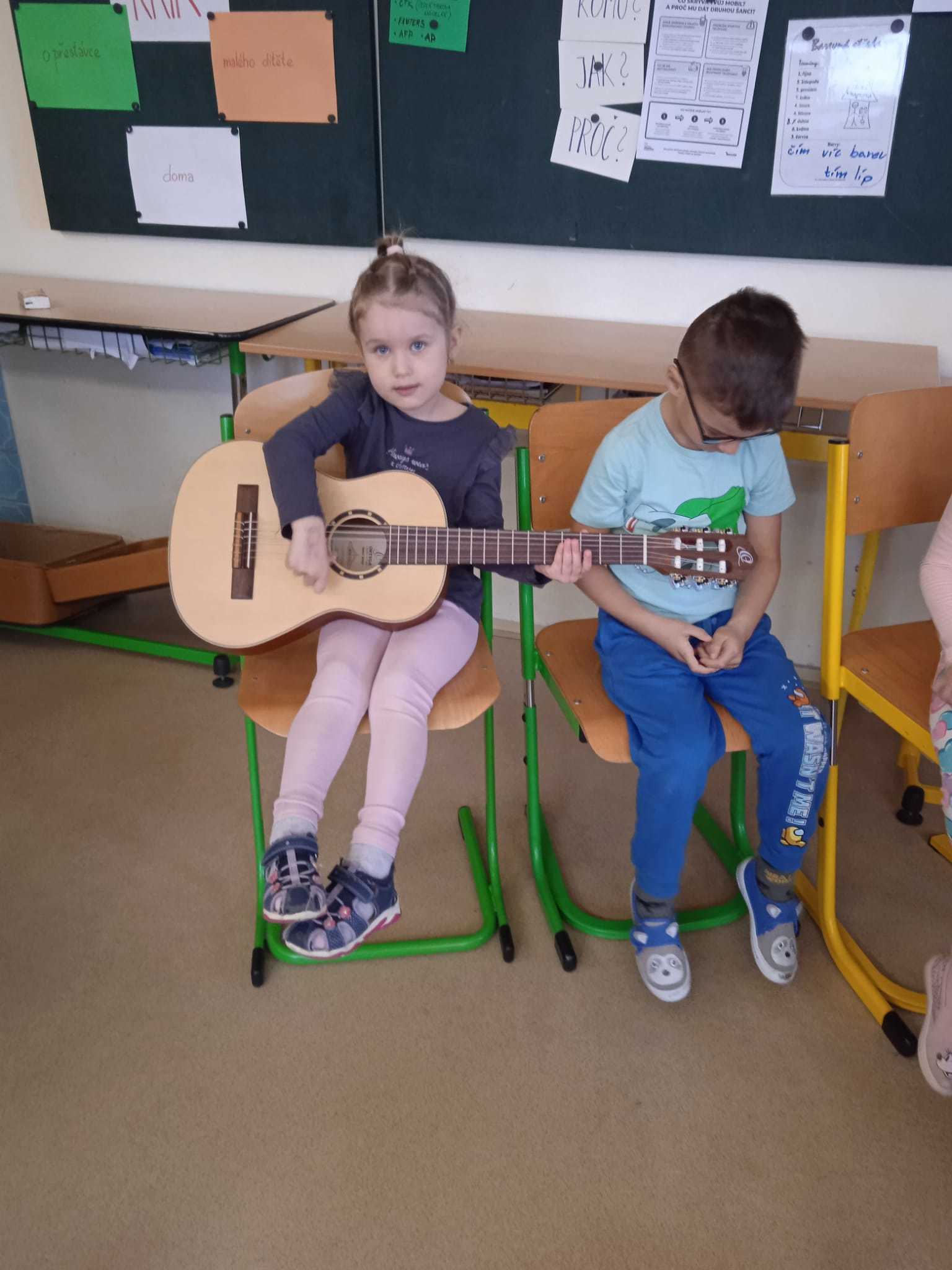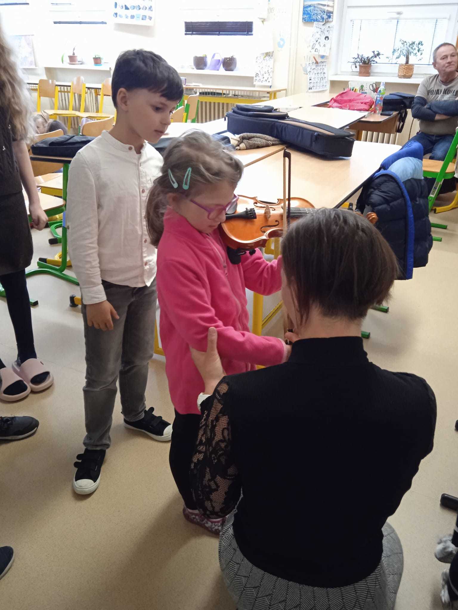 V pátek 10.4.2026 k nám přijely paní učitelky ze ZUŠ z Habartova. Přivezly si s sebou svoje žáky s různými hudebními nástroji. Seznámili jsme se s houslemi, kytarou, flétnou, klavírem a s akordeonem.