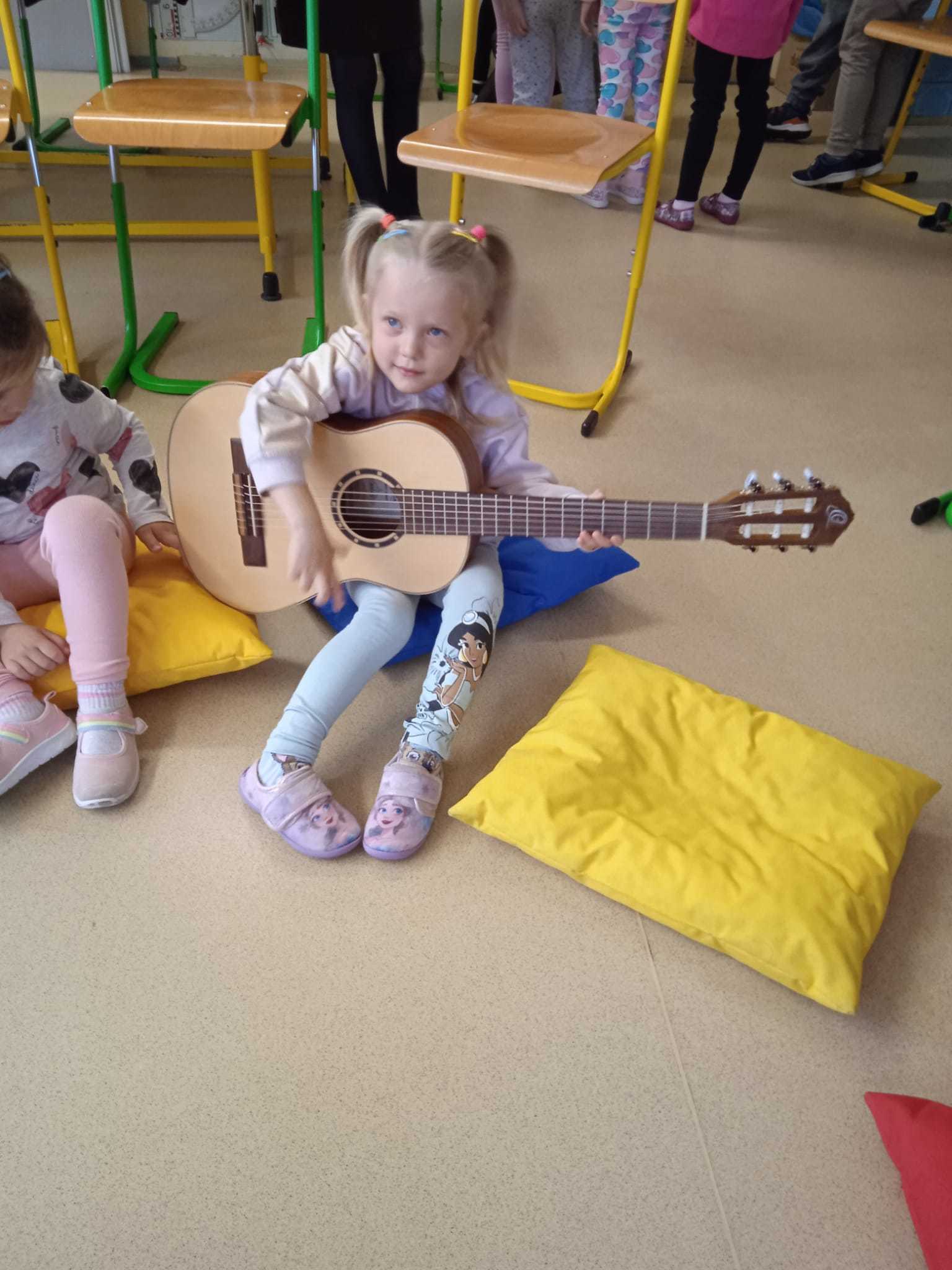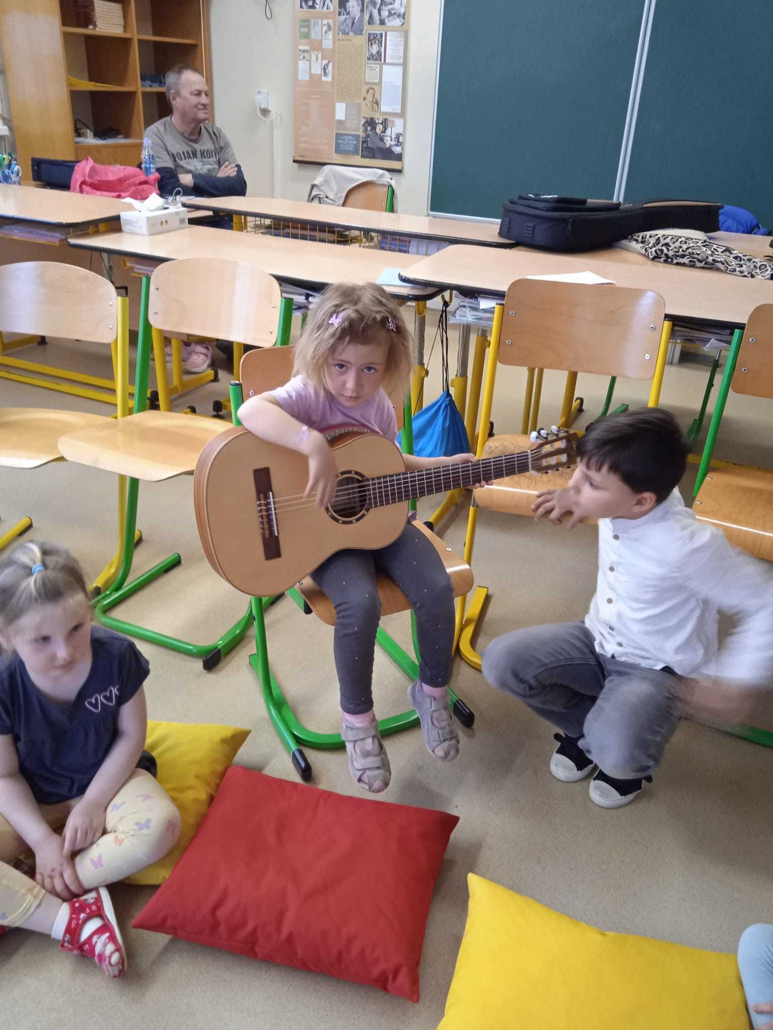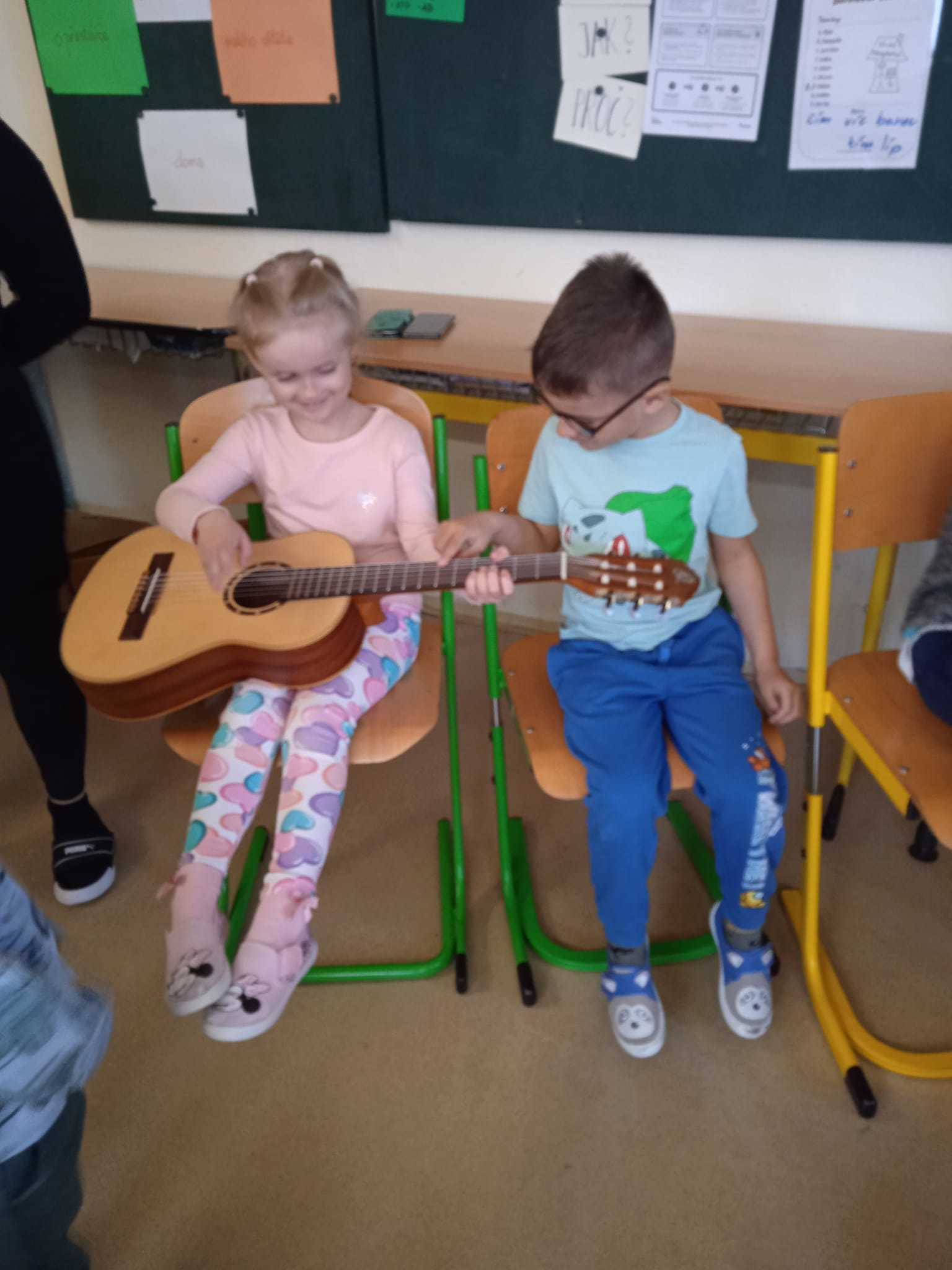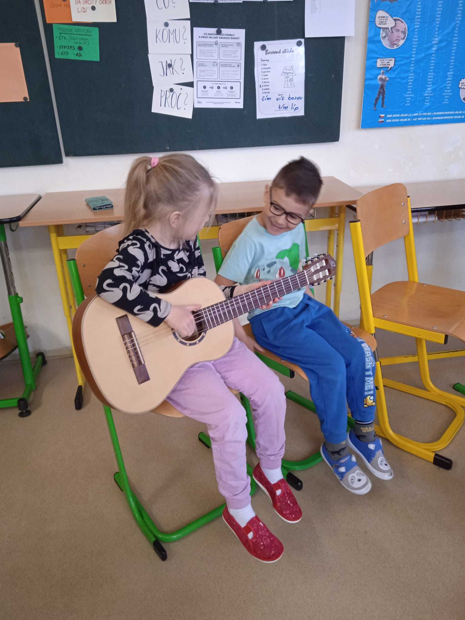 V pátek 10.4.2026 k nám přijely paní učitelky ze ZUŠ z Habartova. Přivezly si s sebou svoje žáky s různými hudebními nástroji. Seznámili jsme se s houslemi, kytarou, flétnou, klavírem a s akordeonem.