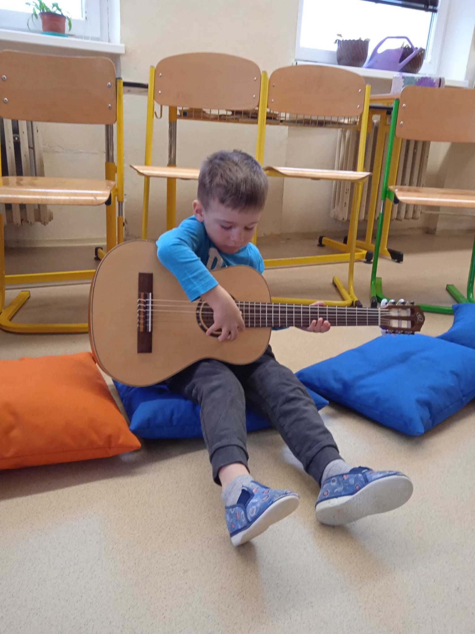 Poté jsme si mohli vybrané hudební nástroje vyzkoušet. To nás moc bavilo.